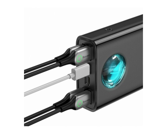 Baseus powerbank Overseas Edition z ogromno kapaciteto 30000mAh, rahlo futurističnim videzom in številnimi priključki, ki omogočajo polnjenje več naprav hkrati in z 65W PD podpira tudi polnjenje prenosnih računalnikov. Popoln spremljevalec mobilne opreme med različnimi potovanji, kampiranjem ali drugimi izleti.