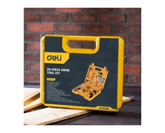 Deli EDL1028J je praktičen 28-delni set orodja saj je primeren za vse vrste manjših domačih popravil. Ne glede na to, ali sestavljate omaro, kuhinjske pripomočke ali svetilko, bo EDL1028J set koristen v vseh podobnih situacijah. Vsi elementi seta so nameščeni v praktičnem kovčku, kar omogoča enostavno in priročno shranjevanje.