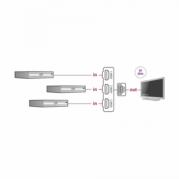Delock HDMI stikalo enosmerno 3x1 8K 60Hz 18649