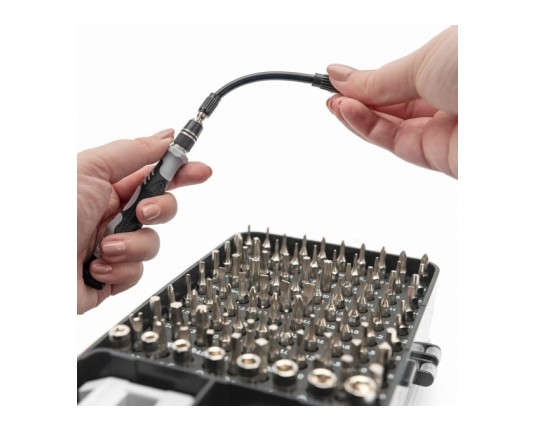 Držalo nastavkov je mogoče izvleči v treh stopnjah in omogoča dostop do težko dostopnih vijakov. Lahko se uporablja za popravilo pametnih telefonov, tablic, igralnih konzol, osebnih računalnikov, kamer, ur, očal itd.
