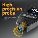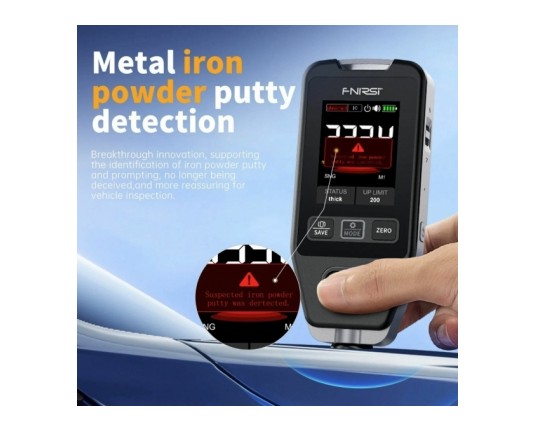 Funkcija zaznavanja kovinskega kita omogoča odkrivanje popravljenih delov karoserije, ki jih običajni merilniki pogosto ne zaznajo. Enostavna uporaba vključuje hitro ničelno kalibracijo in samodejno obračanje zaslona. Vgrajena litij-ionska baterija s kapaciteto 600 mAh omogoča do 8 ur delovanja, polni se prek priključka USB-C. Samodejni izklop po 5 minutah nedejavnosti podaljšuje življenjsko dobo baterije.