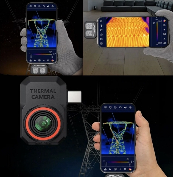 Industrijska infrardeča termovizijska kamera Habotest HT820 bo vaš pametni telefon spremenila v napredno diagnostično orodje. Zahvaljujoč visokoločljivostnemu senzorju in širokemu merilnemu območju temperature (od -15 °C do 600 °C) naprava omogoča natančno termovizijsko slikanje v realnem času. Zaradi kompaktne zasnove, intuitivnega upravljanja in funkcij, kot so sledenje visokim in nizkim temperaturam, točkovne, linearne in površinske meritve ter alarm za prekoračitev praga, je idealna za industrijo, gradbeništvo, avtomobilsko industrijo in tehnično diagnostiko.