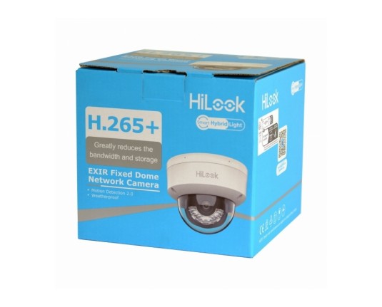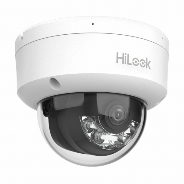 Zunanja/notranja IP kamera za video nadzor HiLook- največjega proizvajalca video nadzornih sistemov. Ponaša se s 8MP ter vidnim kotom H105°, V55°, D127° in možnost POE napajanja preko mrežnega kabla. Kamera omogoča snemanje na snemalnik ter dostop do posnetkov preko mobilne aplikacije ali spletnega brskalnika. Omogoča funkcijo zaznavanja ljudi in vozil ter napredne LED luči za nočno osvetlitev, ki dopolnjuje njeno učinkovito infrardečo (IR) sposobnost snemanja v temi do razdalje 30 metrov. Ta izboljšava omogoča kameri snemanje barvnih videoposnetkov celo v najtemnejših pogojih, kar znatno dviguje kvaliteto slike in olajša prepoznavanje predmetov ali ljudi.