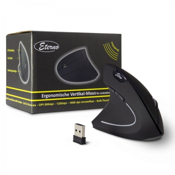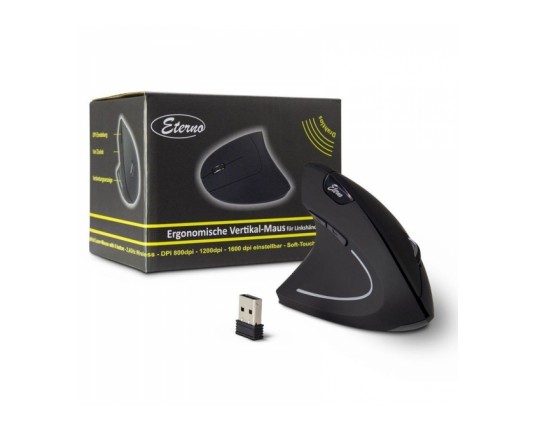 Miška INTER-TECH Eterno KM-206L USB brezžična za levičarje optična za levičarje vertikalna miška združuje kakovostno izdelavo in odlično funkcionalnost, za navišji nivo produktivnosti. Miška je zasnovana za udobje in omogoča nemoteno delo brez bolečin v zapestju, tudi po večurni uporabi. Miška je Brezžična, kar zagotavlja čisto delovno površino brez nepotrebnih kablov. Odlikuje jo napredni Optični senzor, ki zagotavlja izjemno natančnost ne glede na vrsto opravila.