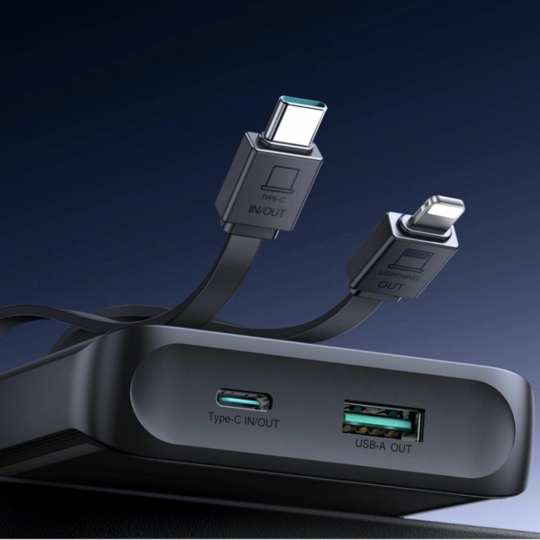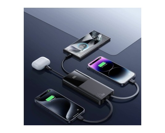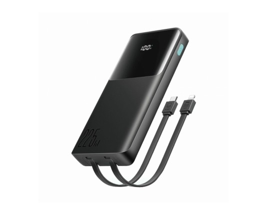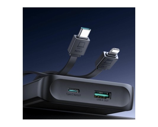 Joyroom JR-PBF19 je zmogljiva powerbanka s kapaciteto 10.000mAh in močjo 22,5W za hitro polnjenje. Opremljena je z vgrajenima kabloma USB-C in Lightning, kar omogoča polnjenje naprav brez dodatnih kablov – idealna za Android in Apple uporabnike. Pametni zaslon prikazuje preostalo energijo, kompaktna in lahka zasnova pa je popolna za potovanja. Dvosmerno hitro polnjenje poskrbi za maksimalno učinkovitost.