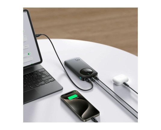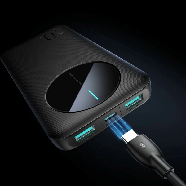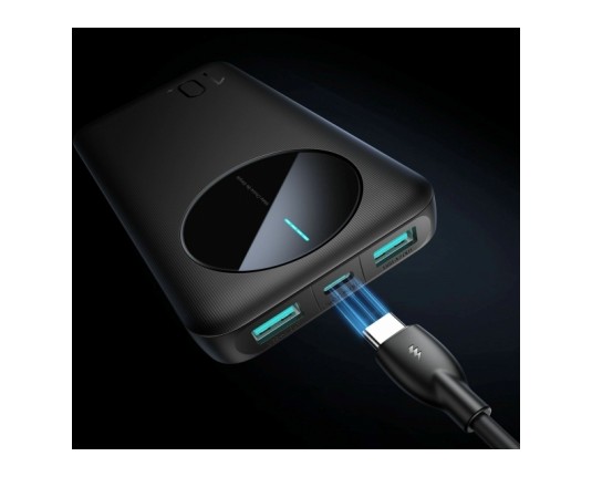 Joyroom JR-PBF12 prenosna baterija črne barve s kapaciteto 10.000mAh je zanesljiva rešitev za polnjenje naprav na poti. Opremljena je z dvema USB-A in enim USB-C izhodom, kar omogoča hkratno polnjenje do treh naprav – idealno za telefone, tablice ali slušalke. Powerbank je zaradi kompaktne oblike enostaven za prenašanje, kar je idealno za potovanja.