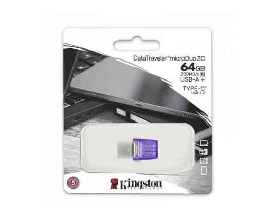 KINGSTON DataTreveler microDuo3C 64GB USB-C Type-A DTDUO3CG3/64GB USB ključ je kvaliteten USB ključ, ki bo poskrbel za vaše potrebe po prenosljivosti podatkov. Trpežno ohišje zagotavlja varnost vaših podatkov tudi pri pogosti in zahtevni uporabi. Zahvaljujoč vmesniku , ki zagotavlja visoke hitrosti branja in zapisovanja, boste vse vaše podatke prenašali z bliskovito hitrostjo. Na njem je mogoče shraniti do 64GB podatkov.