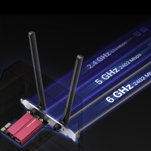 MA86XE oboroži vaš računalnik s tehnologijo Wi-Fi 6E in popolnoma novim pasom 6 GHz, s čimer sprosti polni potencial vašega usmerjevalnika Wi-Fi 6E. Izkusite neblokirano omrežje v ekskluzivnem pasu do naprav Wi-Fi 6E, ki preprečuje padce hitrosti in motnje starejših naprav.