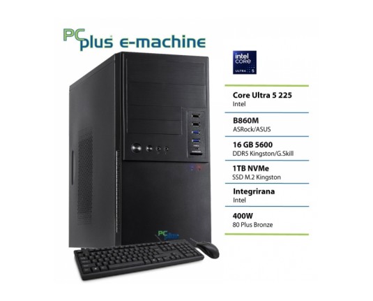 PCPLUS e-machine Core Ultra 5 225 16GB 1TB SSD tipkovnica miška namizni računalnik