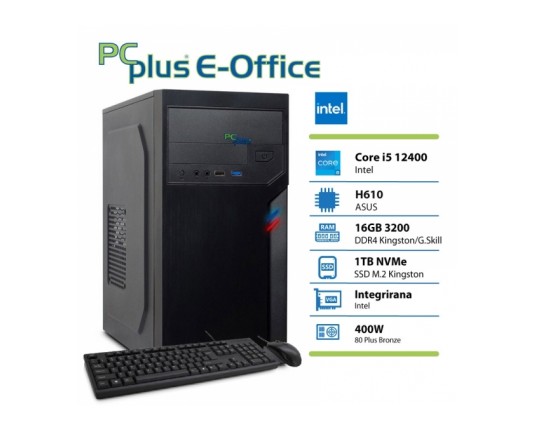 PCPLUS e-office i5 12400 16GB 1TB SSD tipkovnica miška namizni računalnik