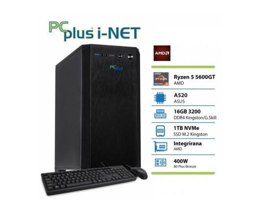 PCPLUS i-net Ryzen 5 5600GT 16GB 1TB SSD tipkovnica miška namizni računalnik