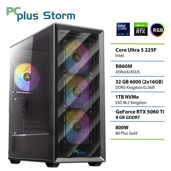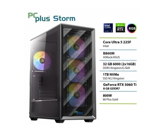 PCPLUS Storm Core Ultra 5 225F 32GB 1TB SSD RTX 5060Ti 8GB gaming namizni računalnik