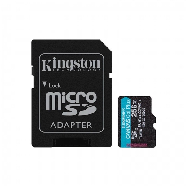 SPOMINSKA KARTICA KINGSTON 256GB CANVAS GO PLUS je izvrsten medij za shranjevanje vaših slik, videoposnetkov, glasbe in ostalih podatkov. Kartica je zelo trpežna, odporna je na prah ter visoke/nizke temperature. To pomeni da boste na njej podatke hranili brez skrbi. Omogoča hrambo podatkov do kapacitete ter zagotavlja visoke hitrosti zapisa ter branja.