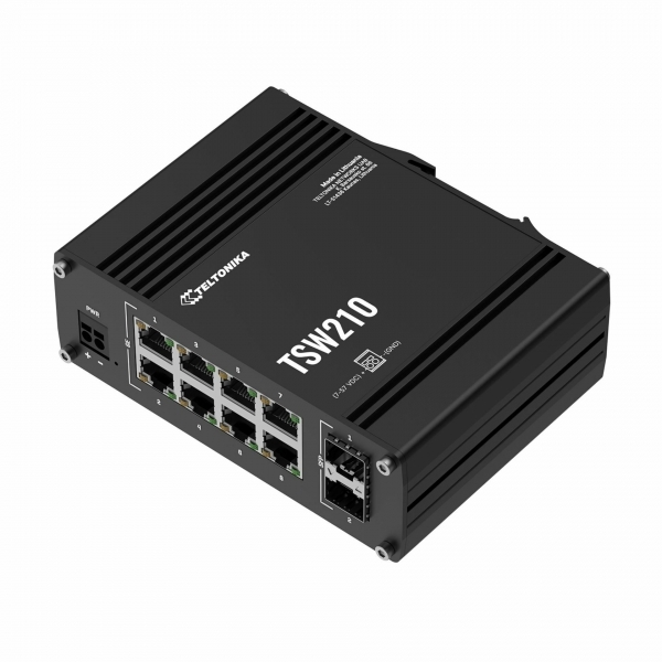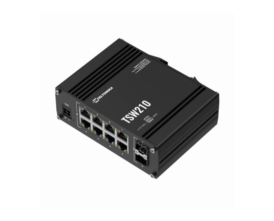 Teltonika TSW210 je mrežno stikalo, ki združuje Gigabit Ethernet in SFP povezljivost. Osem RJ-45 portov omogoča hitro in enostavno povezovanje več naprav, medtem ko SFP porti omogočajo povezavo oddaljenih naprav ob ohranjanju visokih hitrosti in zanesljivosti.