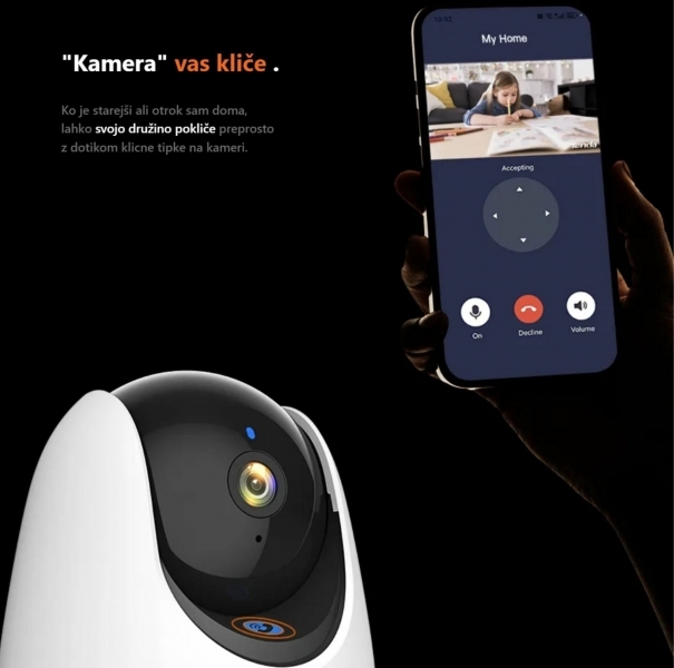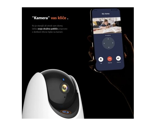 Tenda IP kamera 5.0MP brezžična PT RP7 omogoča 360° panoramsko pokritost, 5MP ločljivost, dvosmerni avdio ter sledenje gibanju. Podpira 0–355° pan in -15–55° tilt ter zaznavanje ljudi z obvestili v realnem času vključno z zaznavo joka. Preko klicne tipke z dotikom lahko otrok ali starejša oseba preprosto pokliče svojo družino, kar povečuje varnost in olajša komunikacijo.