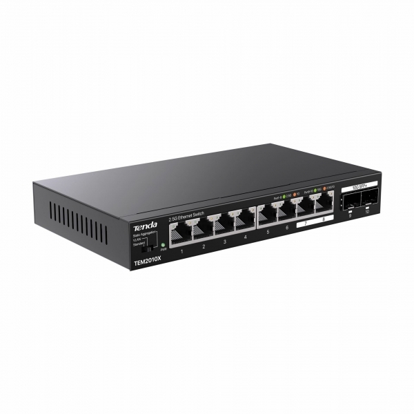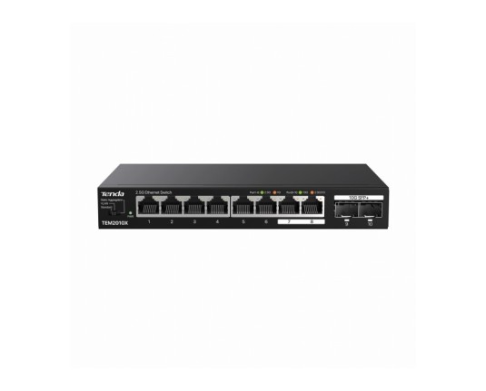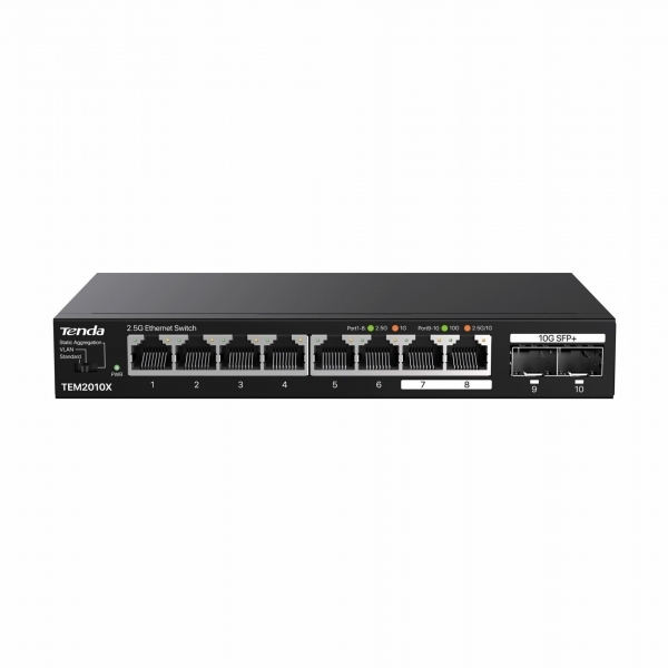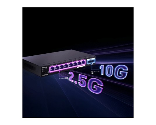 Tenda stikalo TEM2010X ponuja hitrost kar 2,5 gigabitov na vseh osmih portih. V kombinaciji z dvema 10G SFP+ priklopoma zagotavlja hitrejšo prenašanje podatkov in dosega izjemno nizko zakasnitev. Idealna izbira za mala in srednja podjetja, šole, majhne pisarne za nadgradnjo gigabitnega omrežja.