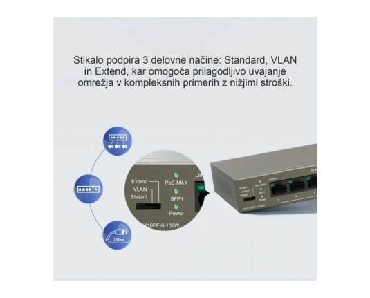 | Hitrost | 10/100/1000 Mbps + SFP 1.25 Gbps |