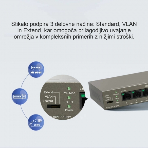 8 x 10/100/1000 Mbps Base-T Ethernet (podatki/napajanje)