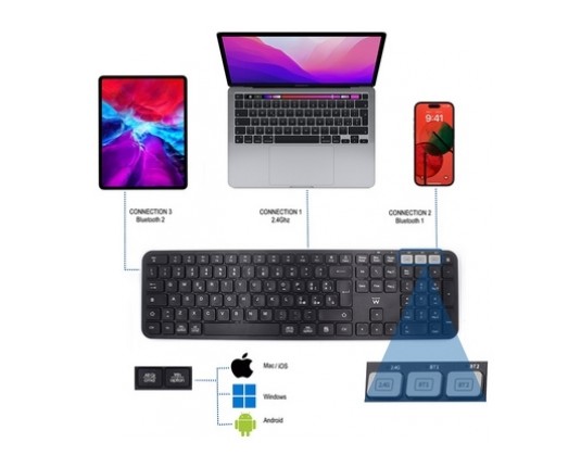 Tipkovnica Ewent Multi-connect Wireless, Bluetooth, USB, SLO