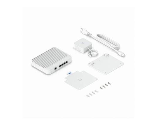 Paket vsebuje: 1x Ubiquiti stikalo 10 Giga 4-port 1xGiga PoE Unifi managed USW-FLEX-XG, 1x Napajalnik, 1x Napajalni kabel, 1x Navodila